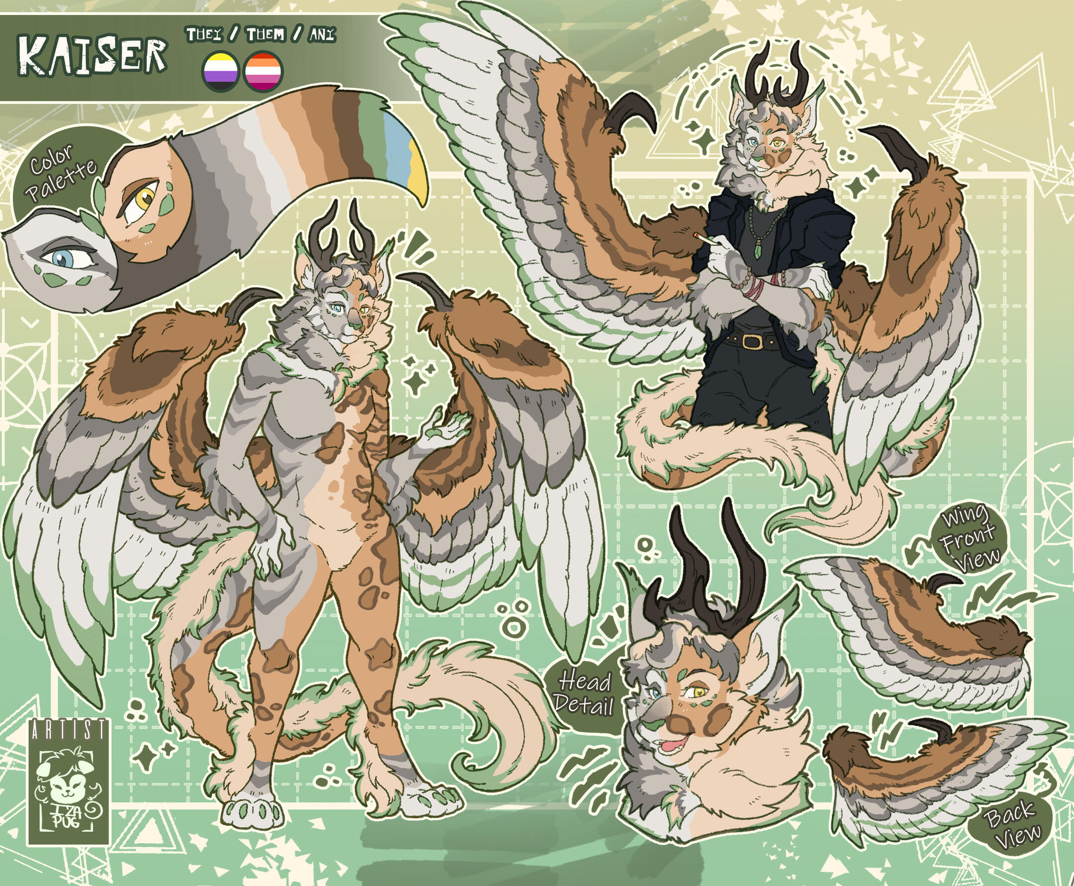 Refsheets are flat-colored and include 1 fullbody, 1 halfbody, 1 icon, and additional items such wing detail or outfits.